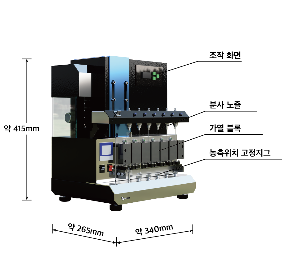 의 구성으로 이루어져 있으며, 농축 위치 조절 나사를 조작하여 원하는 만큼 농축량을 조절하여 자동으로 진행할 수 있습니다.