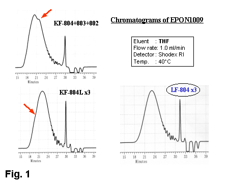 <LF-804와 표준 GPC컬럼인 KF-804L와의 피크 비교>